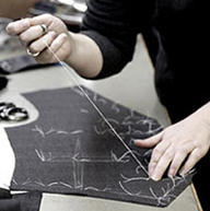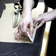 一套凱利易紳正裝,且體師要進行20—30個數(shù)據(jù)的測量,在做的過程中,還要隨時找到身上的細微變化,以確保數(shù)據(jù)準確無誤,并留下相關(guān)的影像資料備用.然后工藝師核對相關(guān)數(shù)據(jù),用紙板打出紙樣,進行面料的裁剪。